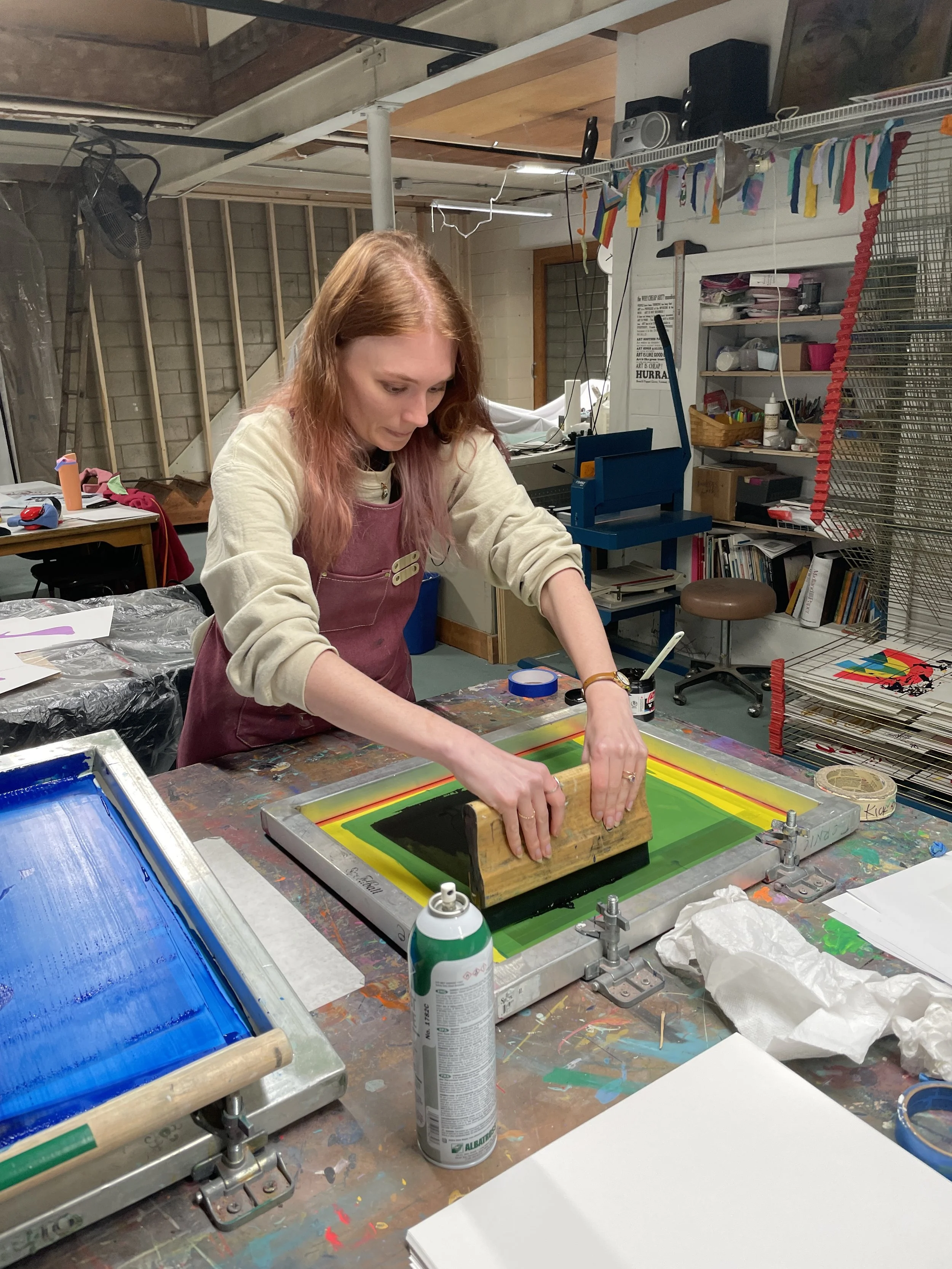 In this four-week workshop you will complete two printing projects and learn all the basics of Screen Printing on paper. We will cover different techniques for creating stencils, including hand-drawn, paper cut out, or digitally printed. You will gain experience coating a screen with emulsion, learn to burn a screen with an exposure unit, learn to reclaim a screen, and have ample opportunity to practice printing multiples on paper. Beginners or those looking to refresh their screen-printing skills are welcome. Register here!