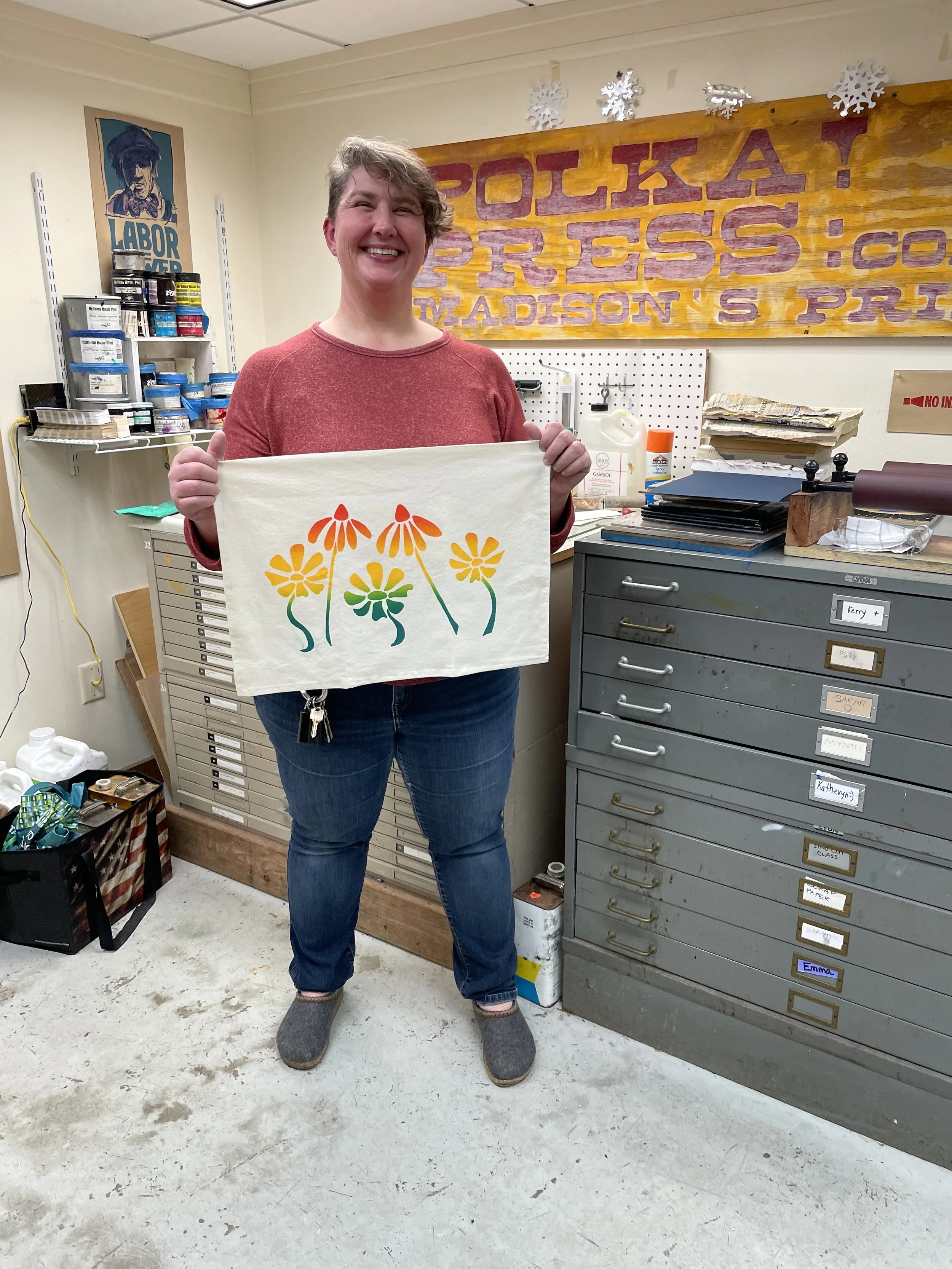 leave the workshop with three tea towels featuring your own artwork! All of Bernie’s workshops focus on creativity, community, process over product, and learning over perfection. Wear clothes you wouldn’t mind getting ink on, bring an apron if you have one, and rubber gloves if you don’t want ink on your hands. Optional: If you prefer working digitally, please bring your ipad or laptop. Otherwise just bring your ideas and you will create your stencils by hand. Learn more and register here (through the Textile Art Center).